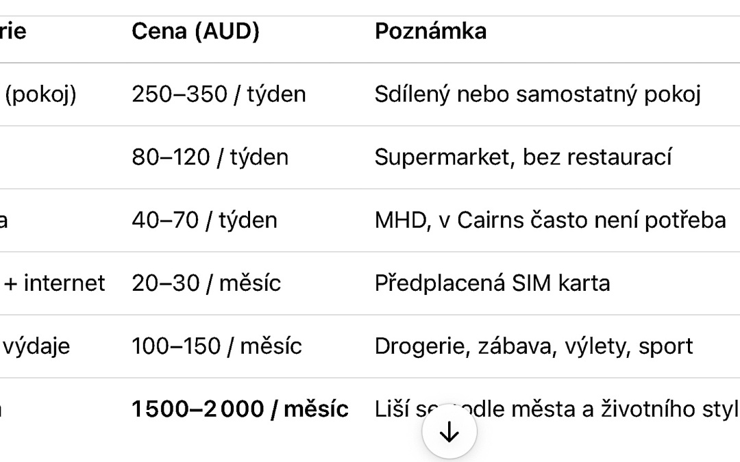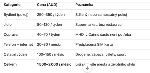 • Příjmy a náklady v Austrálii Cairns